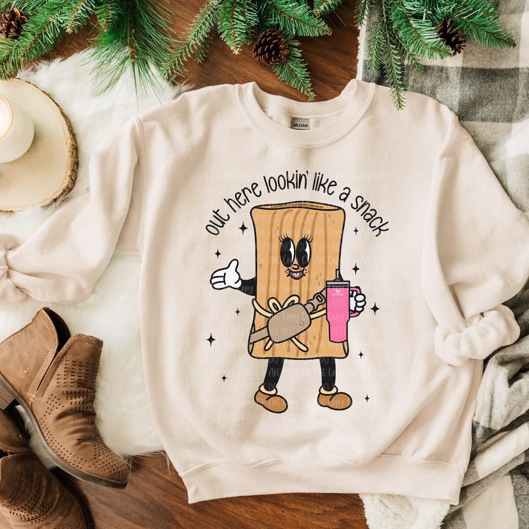 Get ready to snack in style with our Christmas Snack Sweatshirt! Crafted with both comfort and humor in mind, this sweatshirt showcases a fun "Out Here Looking Like A Snack" design that captures the essence of the holiday season. Whether you're spending time with loved ones or showing off your sense of humor, this festive sweatshirt is the perfect addition to your winter wardrobe.