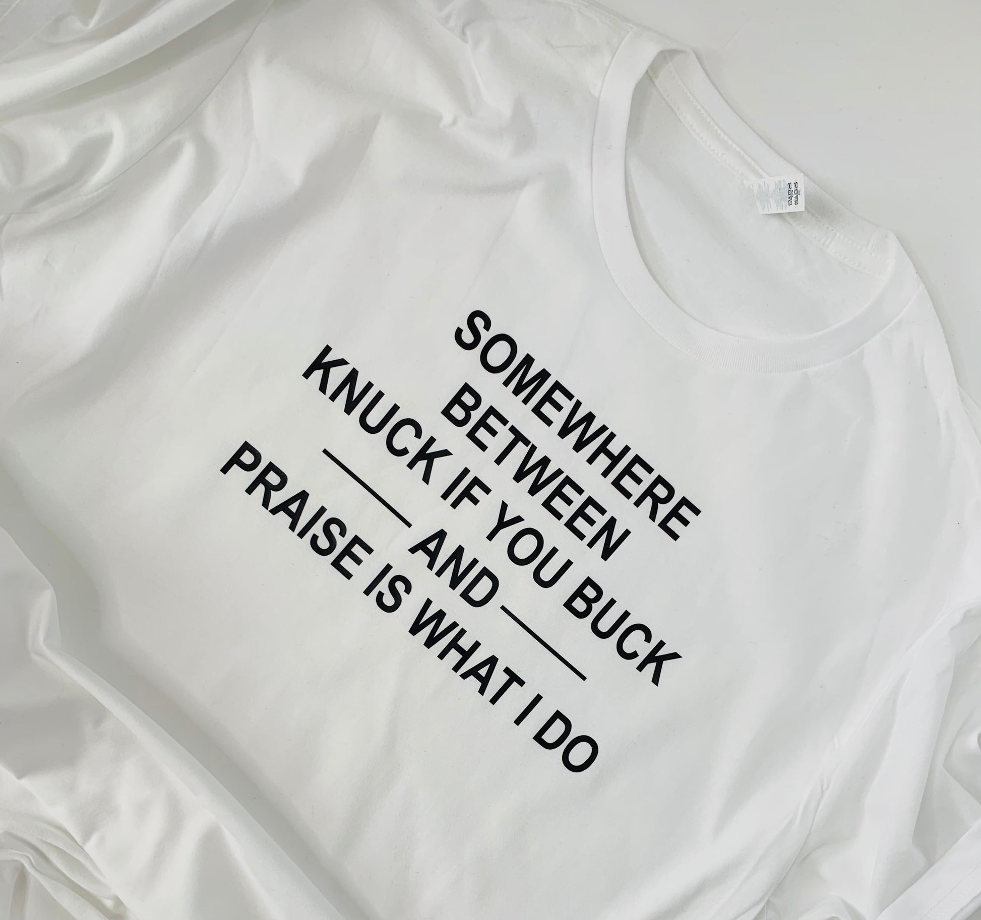 Somewhere between knuck if you buck and praise is what I do